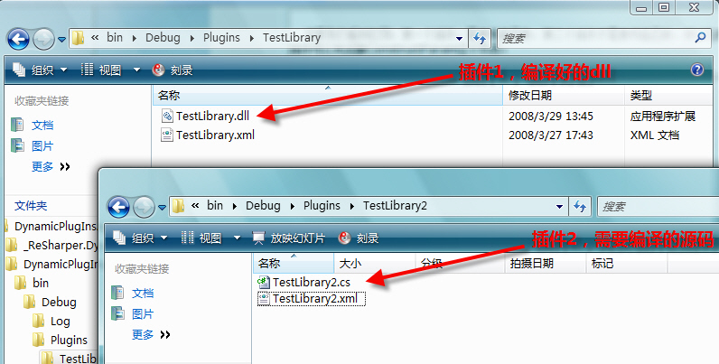 1.插件目录,一个放入编译好的dll,一个放入.cs源码