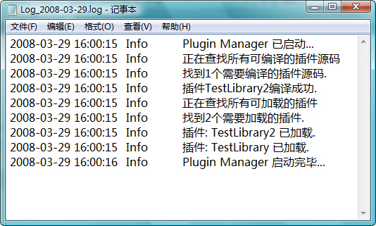 6.插件的动态卸载和发布 a.动态卸载,可以直接使用Plugins Manager的UnloadPluginByName直接通过程序调用卸载。也可以手动打开插件的配置文件,将EnablePlugin设置为False b.动态发布,直接在插件目录中,建立一个新的子目录,然后将插件的dll和xml配置文件直接拷入即可 关于第6点,这些功能的演示,截图比较麻烦,大家可以直接使用测试程序测试即可。
