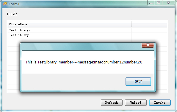 5.插件的调用 选中TestLibrary,点击Invoke按钮: